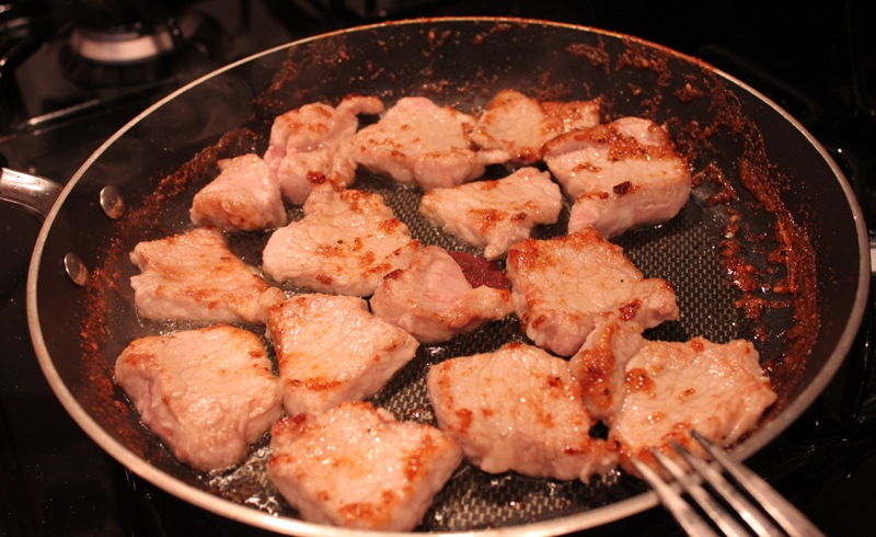 In the same pan add your EVOO and pork over medium heat. Brown the pork on both sides.
