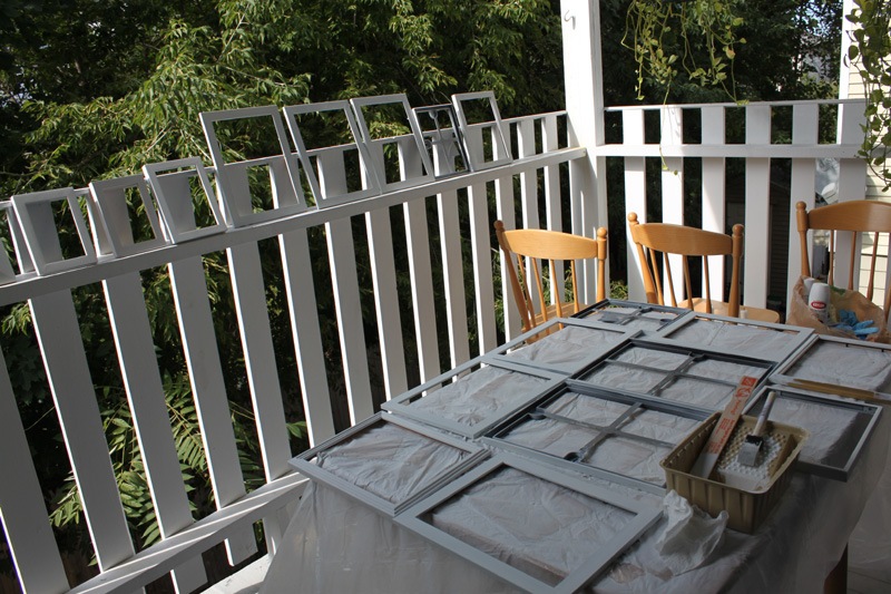 I spray painted 3 white coats on every frame…until I ran out of spray paint. Ugh.