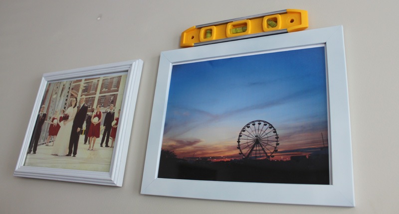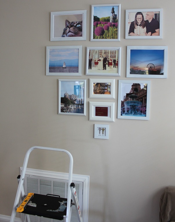 See, because I take pictures everywhere, we had a million picture frames hung about the house. They seemed scattered and disjointed so I wanted to unify them to tell our story.