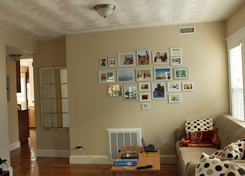 I put all of the pictures back in and arranged the frames on the floor in the way we wanted to hang them.