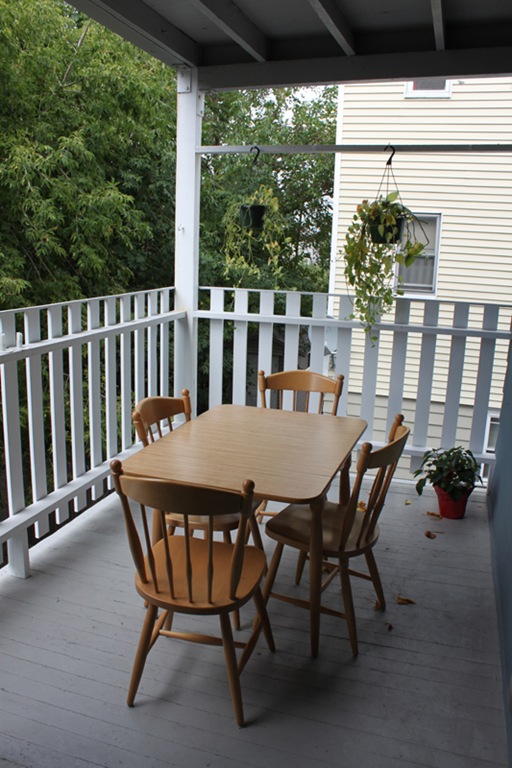 Since we have a brand new dining room table we brought our old set out to the back porch. We wanted to weatherproof it though so we gave it a few liberal coats of Minwax Urethane. Now we can leave it back there and not worry about it molding, getting soaked, or getting ruined.