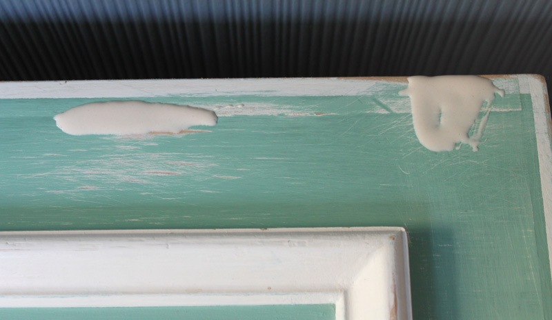 I painted one coat of white paint on two drawers and used some wood glue to fill the holes on the third drawer.