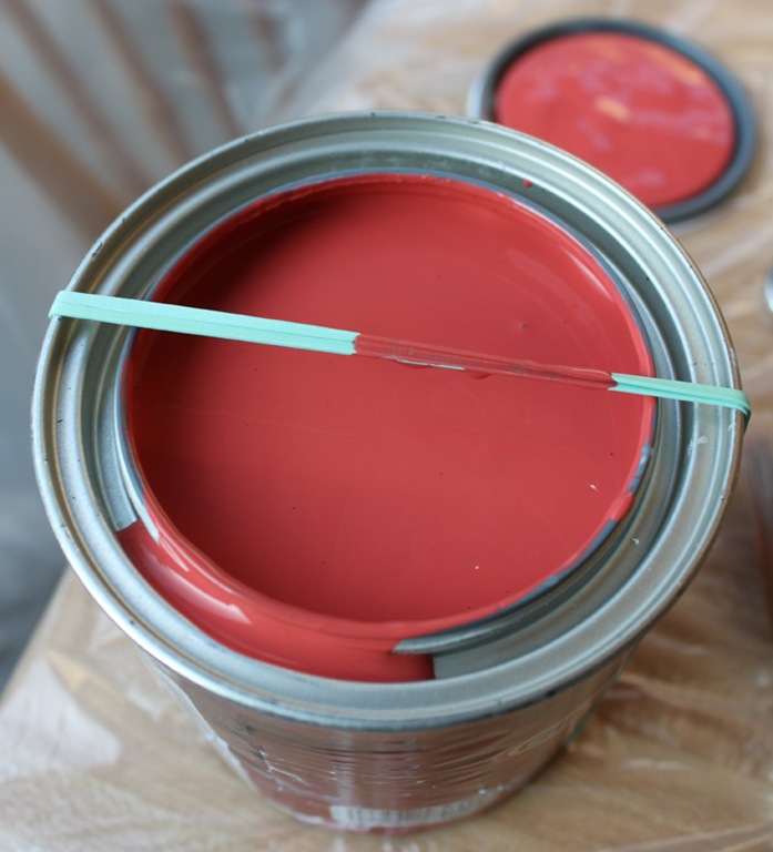 Next I taped up the base and painted it with one coat of this gorgeous pink-coral color we picked out to match our sideboard.