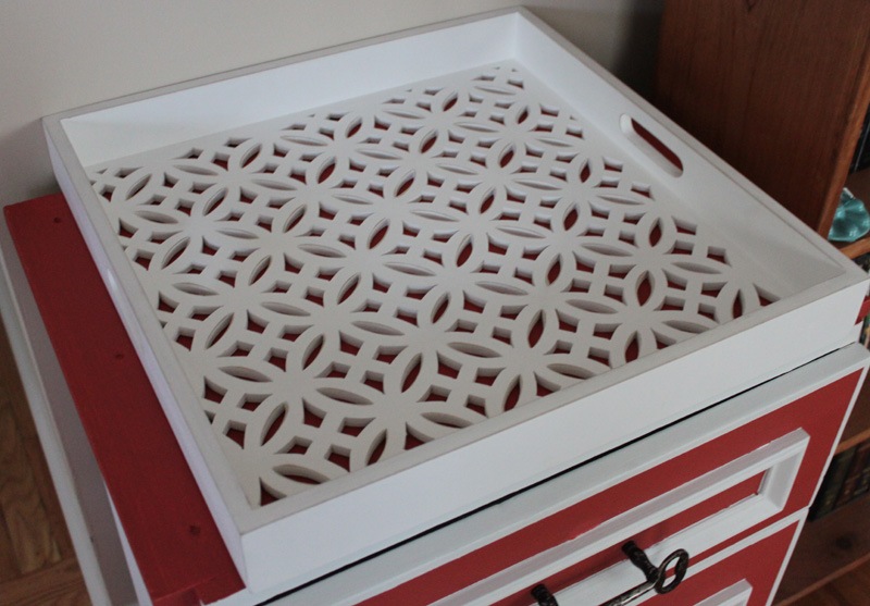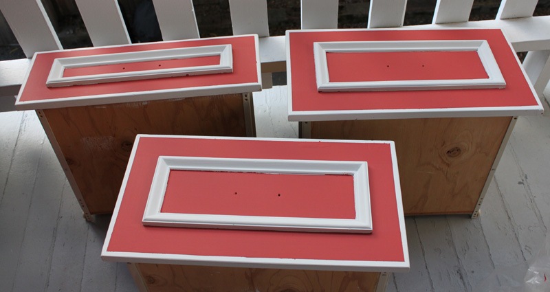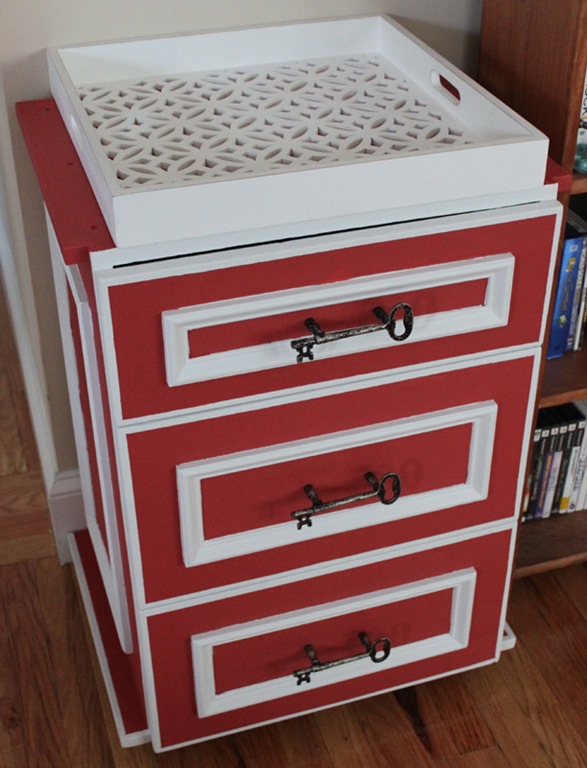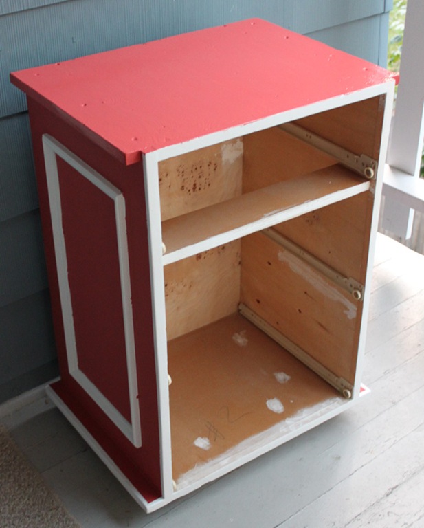 I gave the third drawer and the base a final coat of coral paint (no pictures).