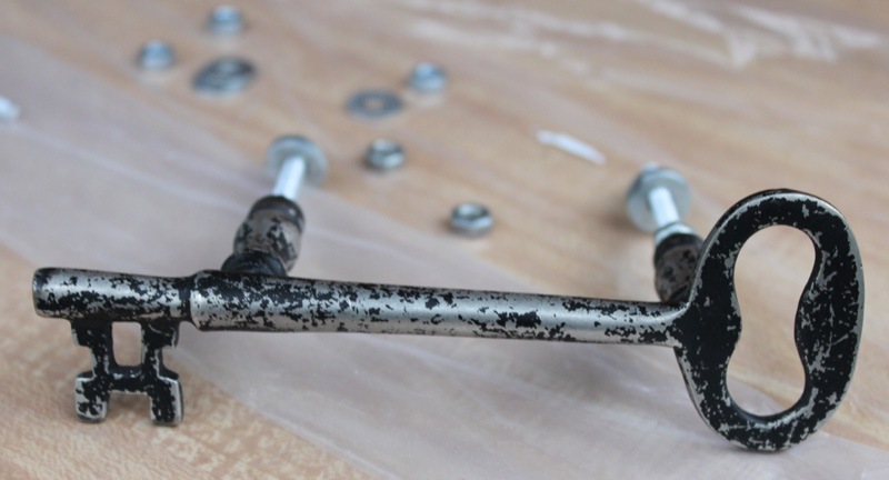 I got these great key shaped handled drawer pulls at Anthropologie, of course. I thought they were adorable, rustic, and modern all at the same time.