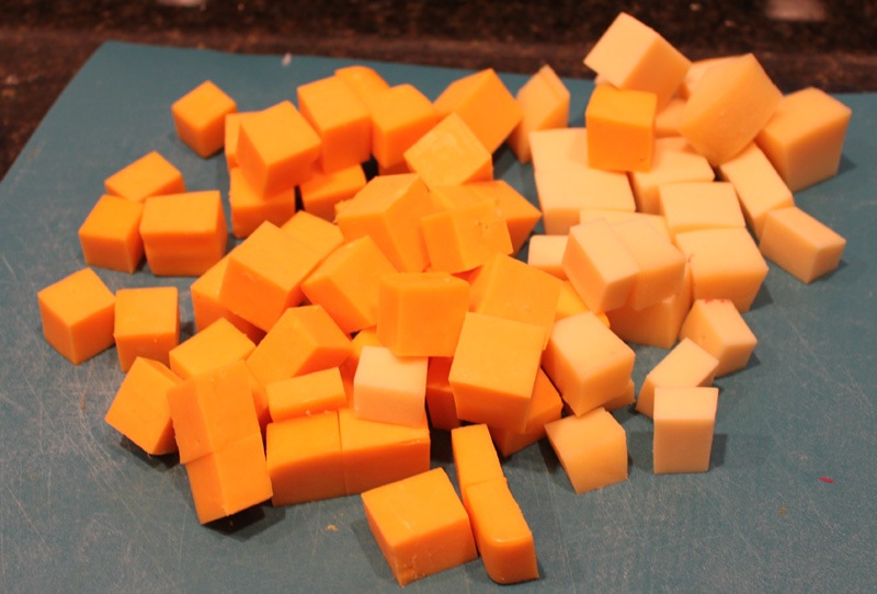 1.5 lb. cheese (I used 3/4 mild cheddar and 1/4 gouda)
