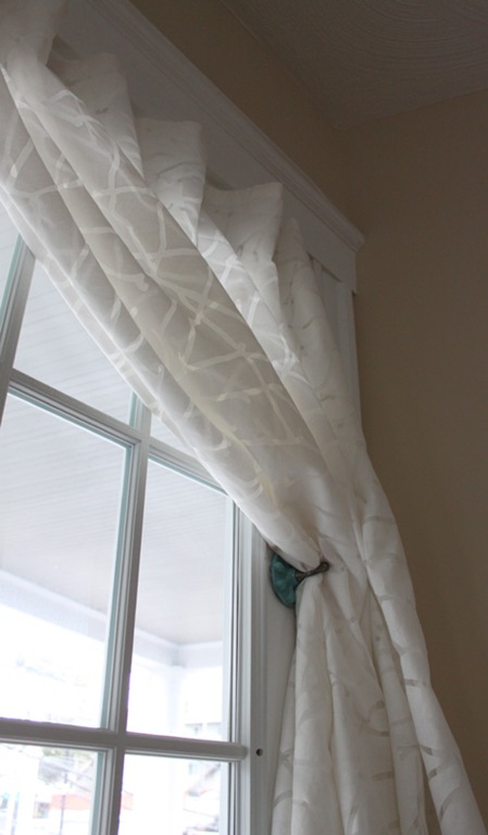 Of course the thing that initially inspired me to make a door curtain was this beautiful aqua tieback hardware I found at Anthropologie. It’s like all of their hardware: clean, modern, and elegant.