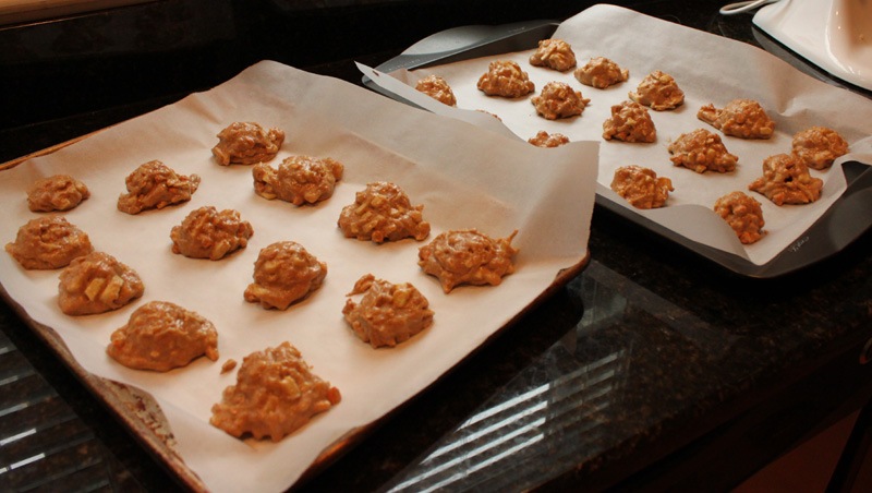 They aren’t the prettiest cookie to look at but they taste amazing. The balance of sweetness between the apples and the butterscotch is delicious, the crunch of the almonds provides great texture, and the slight spice of the cinnamon and nutmeg just screams Fall.