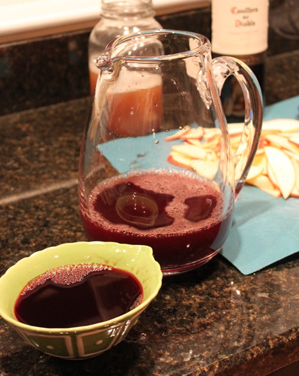 You may remember the delicious apple sangria I had for my birthday this year. I definitely wanted to recreate it at home and since we were having folks over this weekend, it seemed like the perfect time. I also wanted to use up that yummy apple infused simple syrup I made.