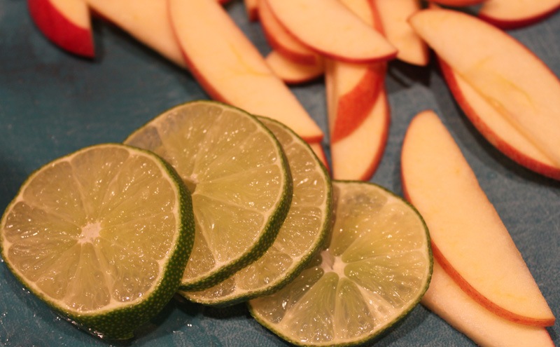 Lastly, add your apples and limes to the top. Pour and enjoy!