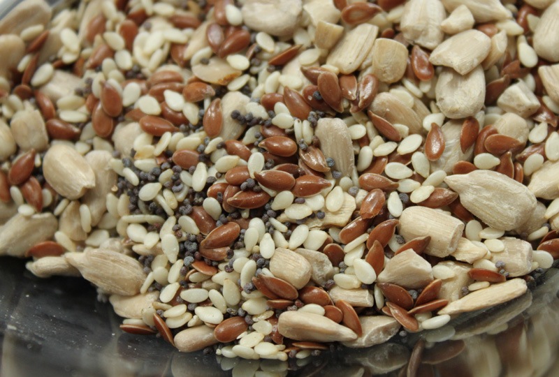 I mixed 1 tbsp. poppy seeds, 1.5 tbsp. sesame seeds, 2 tbsp. flax seeds, and 1/2 cup of sunflower seeds together in a bowl. I then transferred my seed medley to a plastic bag to keep in the fridge indefinitely.