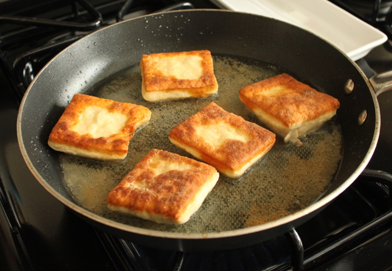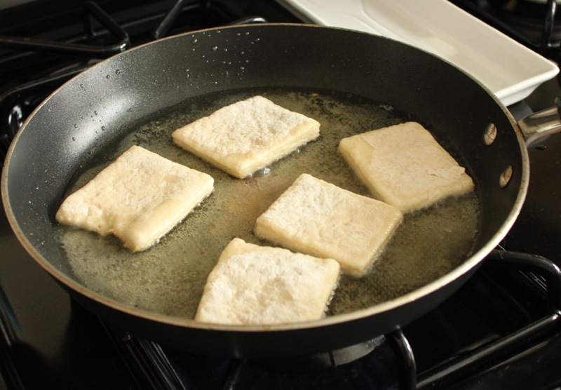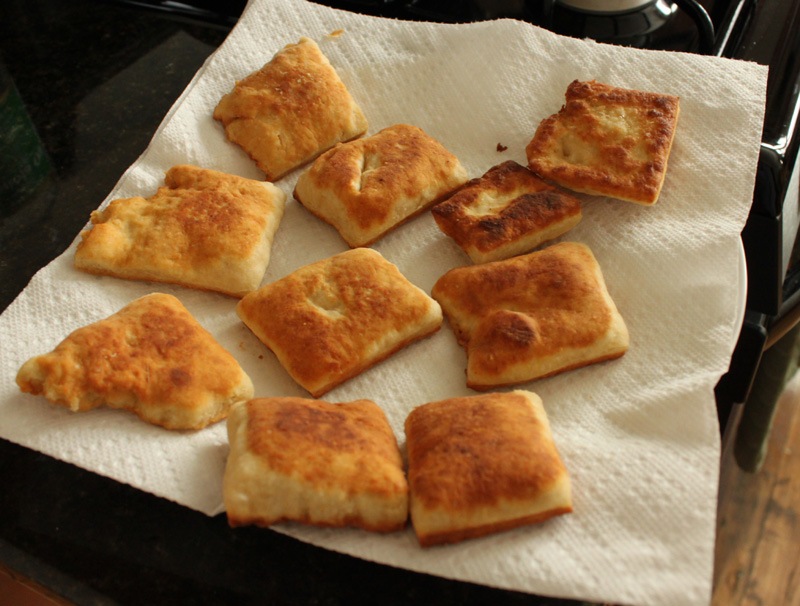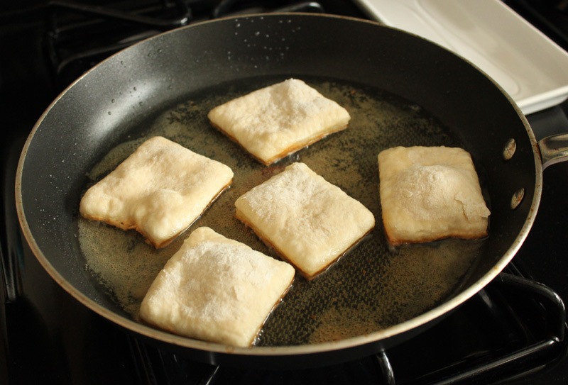 I didn’t want to fully immerse the dough in oil so that’s why these aren’t 100% authentic. I just lightly fried each side until they puffed up, flipped them, and fried the other side. Each side took about 1-2 minutes. When they were finished I placed them on the paper towel lined plate to blot off some of the oil.