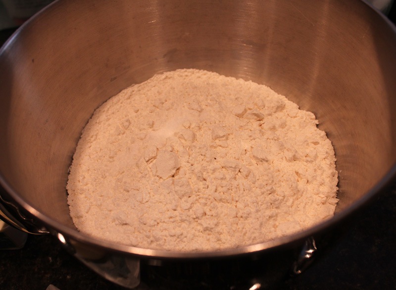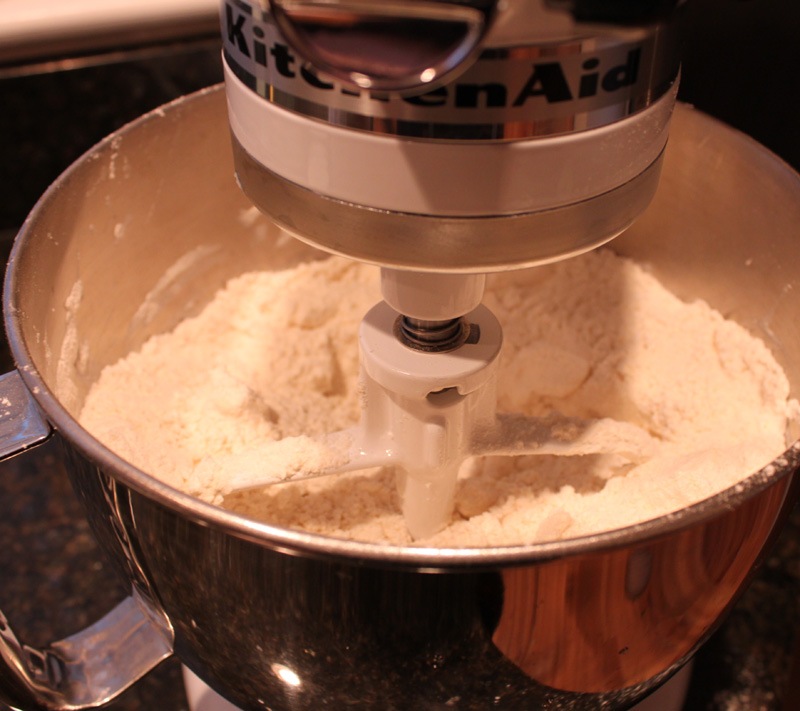 Make sure the butter is super cold and cut into small cubes. Combine with the dry ingredients in your mixer until the texture looks like parmesan cheese.