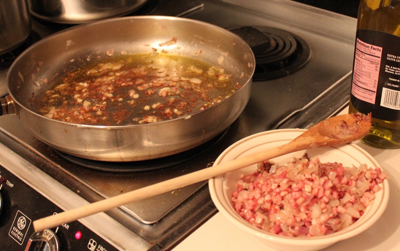 8 oz. pancetta (I bought two 4 oz. packages of Citterio brand pancetta)