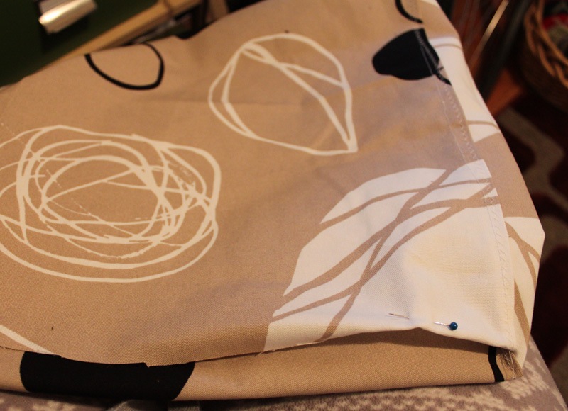 My plan was to sew straight, 1″ hems on every piece of fabric and then simply sew the larger piece on to the top. Kinda hard to explain, you’ll see.