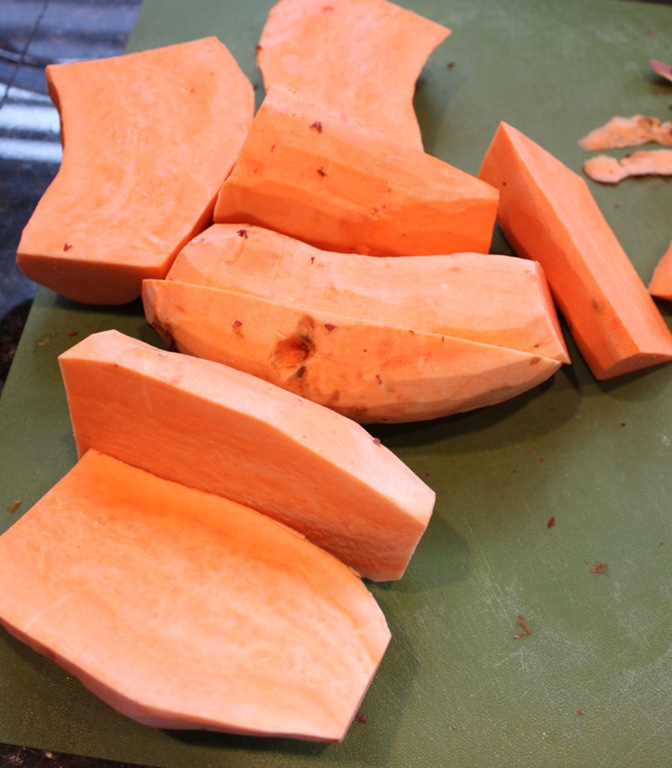 The first step is to process all of your potatoes – wash, peel, grate in your food processor. You can leave the skins on (I did with the white potatoes, I don’t recommend doing that with the sweet potatoes though) or hand grate them. It’s really up to you!
