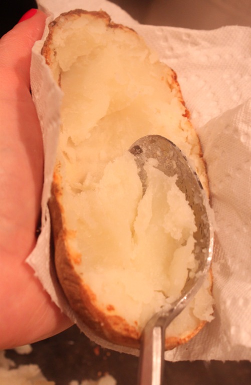 When I was a single lady I would have a baked potato for a meal all the time. Lunch or dinner, over and over again. I never got sick of them. Then I met John and the baked potato eating stopped. He isn’t a fan (which is crazy – who doesn’t love a buttery, warm, salt and pepper covered baked potato?!) so I rarely have them anymore unless we go out to eat. Compromises people, compromises.