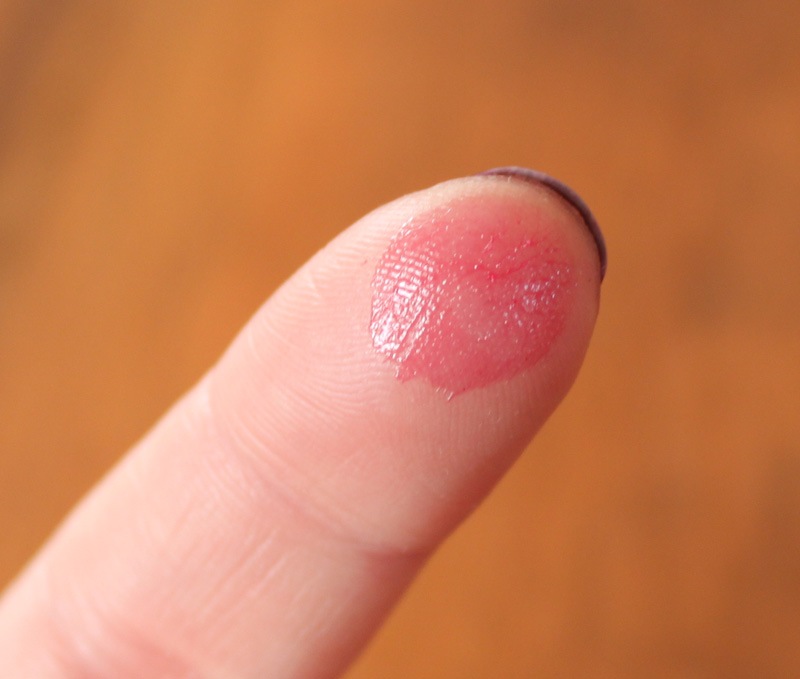 The color is a lovely sheer red raspberry. It’s soft, smooth, the perfect color, and stays on for a long time. I highly recommend it!
