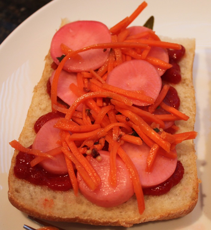 1/2 cup pickled vegetables (here is my recipe for a quick pickled radish/carrot combo)