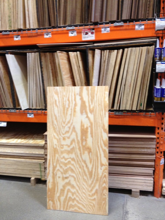 First things first, I needed slab of wood. I set out to Home Depot where I found a 2 ft. x 4 ft. board and had them cut it down to 2 ft. x 3 ft.