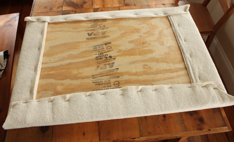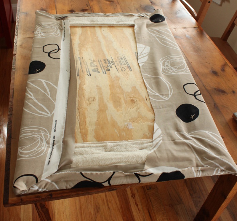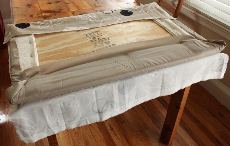 When the batting is done flip the board over to make sure everything is smooth. Pulling the fabric tight as you go will really help prevent wrinkles or bunching.