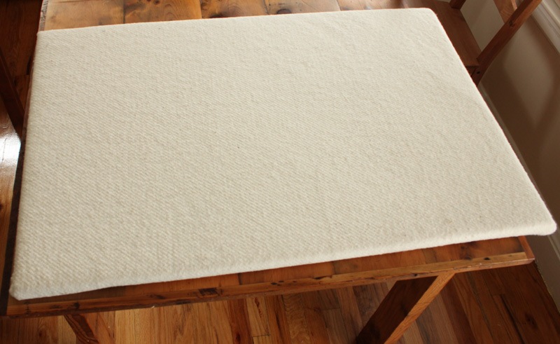 I contemplated batting options for a long time in the fabric store. I started with loose batting but thought it might clump and wasn’t sure if it was heat safe. I looked at felt too but didn’t like the texture. Finally I found this natural needled cotton and it was perfect. I bought about 3.5 yards and used it folded in half.