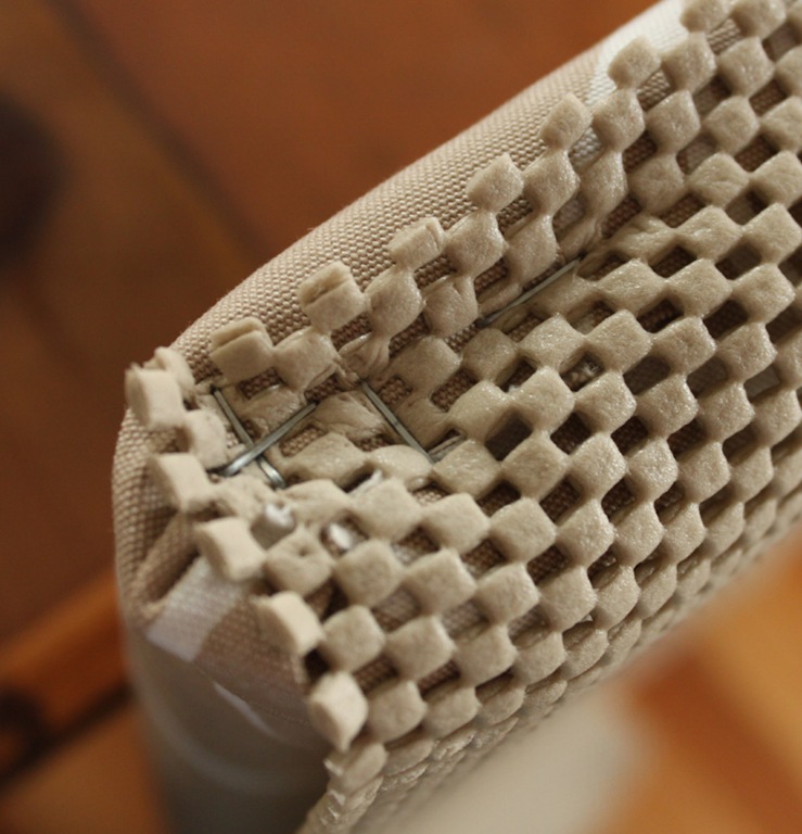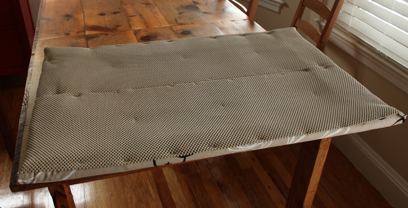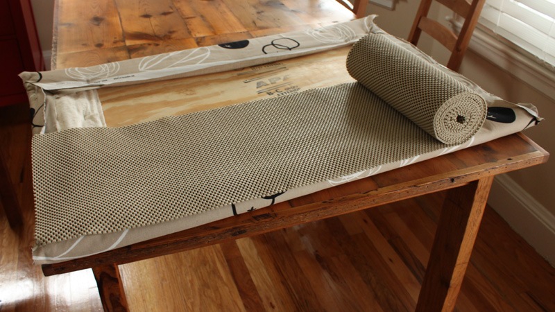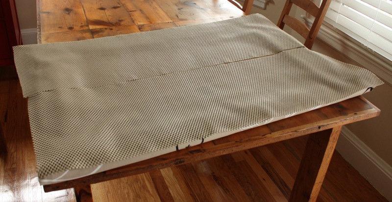 The final step is to line the back of the ironing board with grip liner. You can omit this step if you want. I decided to do it because I will be using my new ironing board on top of our dining room table and I wanted to avoid it sliding around or scratching it up. The grip liner is amazing – the board will not budge. The grip liner also doubles as an extra step to cover up all the staples on the back of the board.