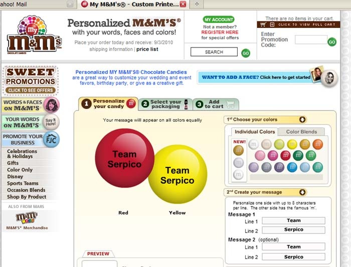 The first thing we did was fiddle around designs/ideas on the Personalize Your Own M&Ms website. Here’s what we ended up with: