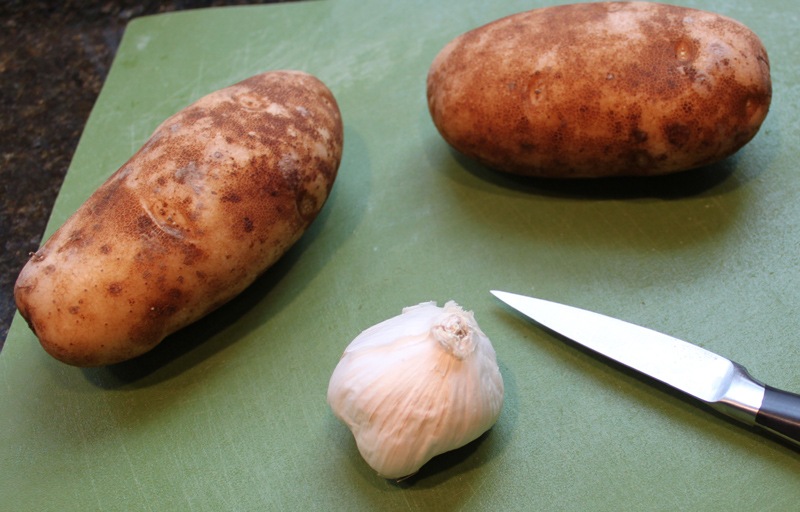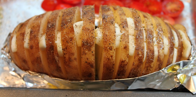 Basically these potatoes are nothing but a simple baked potato. However, I think the partial slicing and garlic slivers make it fancy.