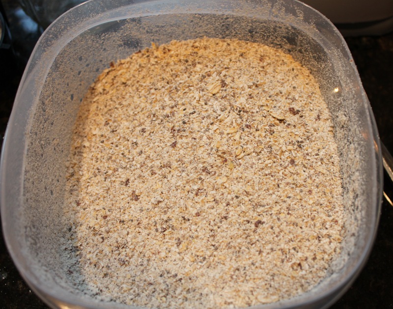The first thing I did was make the base which required me to grind up the oats, flax seeds, and chia seeds in the blender. You could do this with a spice grinder too.