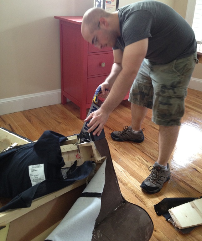 Our only option was to hack the couches apart and take them out piece by piece. It made us both sad but it had to be done.