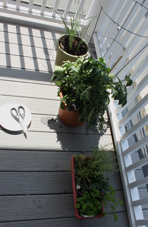 Here’s a quick peek at how our container herb garden is coming along (one of the goals in my 30 Before 30 Project).