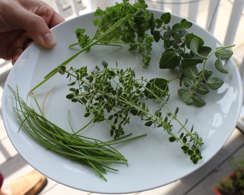Our herbs are mild but distinct in their individual flavors. They add a brightness and freshness to every dish they are in. The thyme is totally my favorite – it’s lemony and earthy. I’m so glad our herbs are growing, that we can eat them, and that they taste delicious!