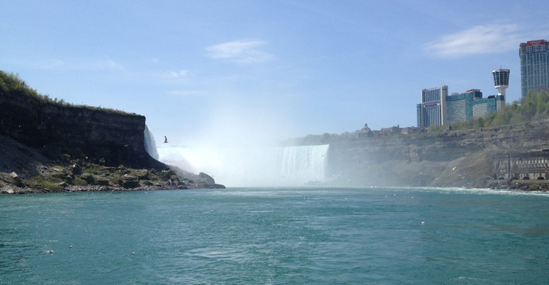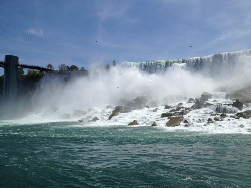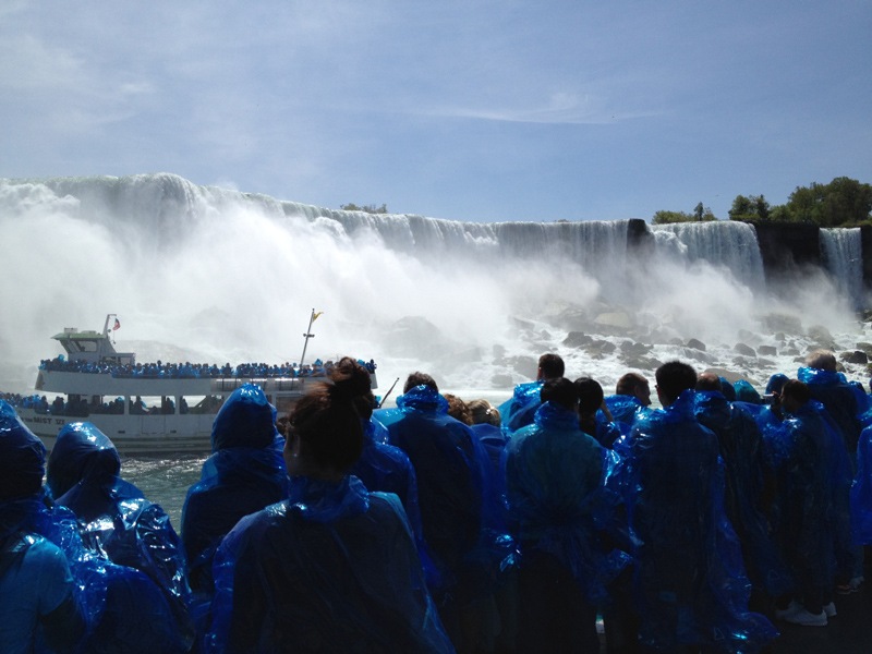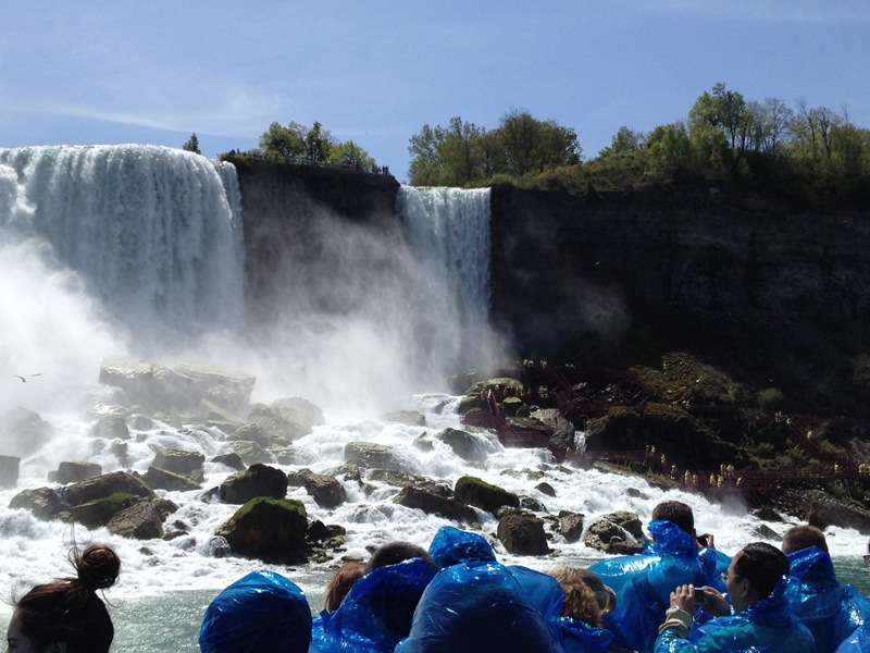 Man, was I wrong! As we approached the horseshoe of the Falls the mist became more like pouring rain and the noise was deafening. We hurriedly put our cameras away as the boat idled in the midst of the downpour, huddled together getting soaked. As the boat finally pulled out of the horseshoe and we came out of the downpour, we could not stop laughing. It was a refreshing experience to say the least!