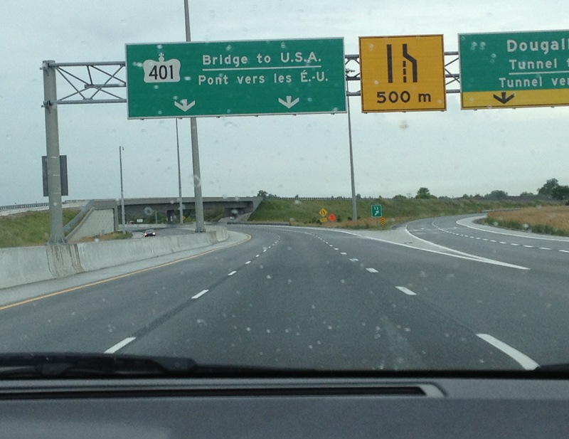 Before we could cross back into the U.S. we had to wait in the long border crossing line going into Detroit. Of course our car got selected for a random search (where we had to get out of the car while they searched it, x-rayed it, and dog sniffed it) which delayed us an hour. Oh well!
