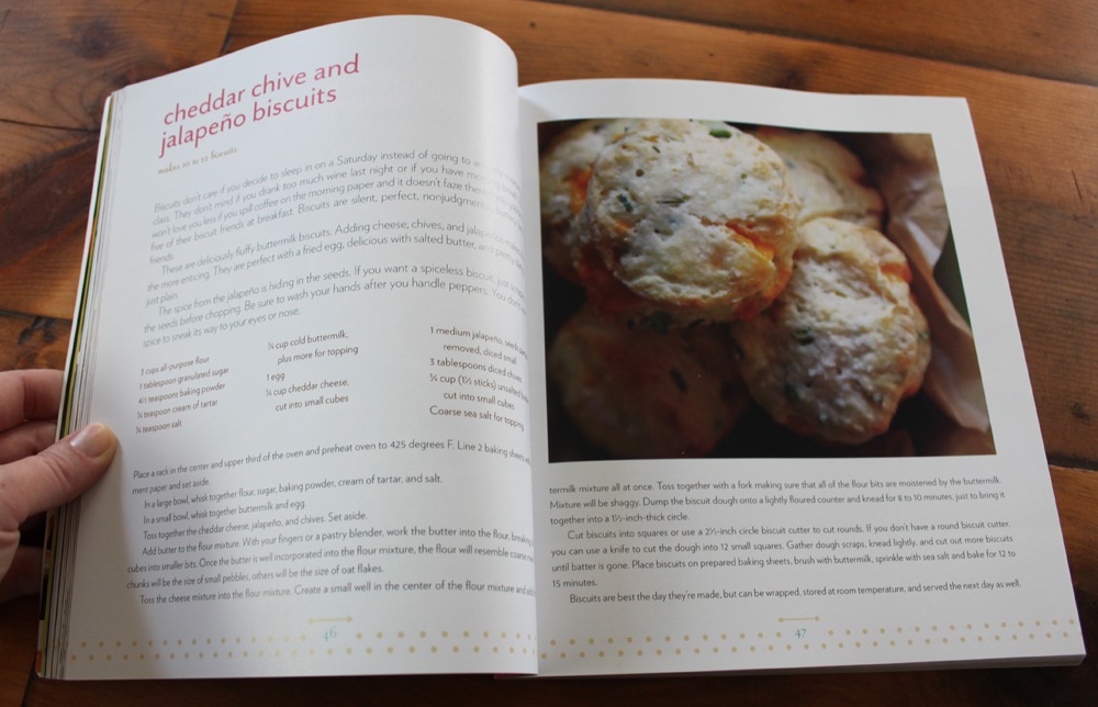 I never make biscuits and I really should because they are delicious and foolproof. Somehow I got it in my head that I needed biscuits immediately after we got home from our road trip. My go-to gal Joy is a biscuit expert so you know I consulted her cookbook first. Her recipe for Cheddar, Chive, and Jalapeno Biscuits (see below) was a good start but I had bacon in mind for my biscuits. I adapted the recipe a bit and came up with the following one of my own!