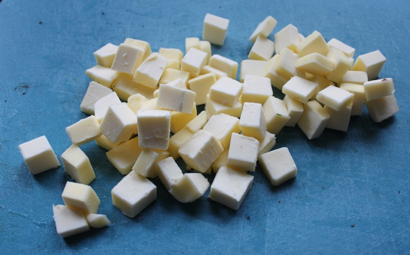 Cut the butter into small cubes and add to the Dry Team bowl.
