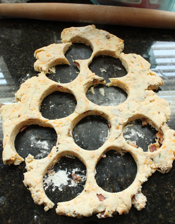 Properly made biscuits will have buttery layers that literally melt in your mouth. These biscuits are even better because between the buttery layers are cheese, bacon, and chives. So good.