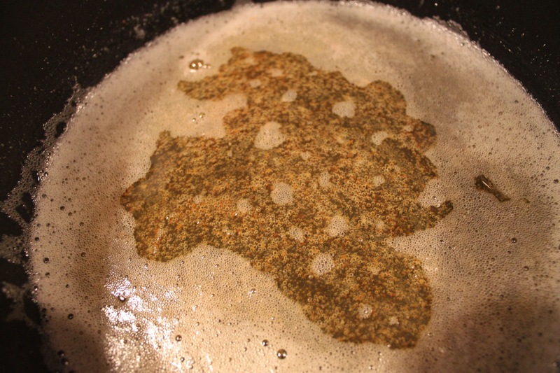 The first step is to melt the butter over low heat in a big pot. After a few minutes it will begin to foam.