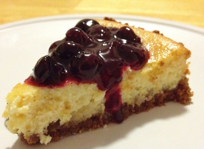 When the cheesecake has fully cooled, remove it from the springform pan and cut into wedges. Serve topped with the blueberry sauce. There you have it – classic!