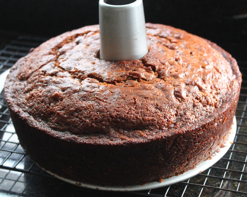 This recipe can be used to make a cake, layer cake, cupcakes – whatever you like! I opted for the bundt version. Bake in a greased bundt pan on 350 degrees for 55 minutes, or until a toothpick inserted into the cake comes out clean.