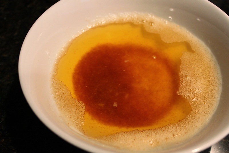 Start by making the brown butter. Brown butter is, literally, butter that has been browned like you would brown meat or vegetables. By browning it, the butter releases all of its’ water, the flavor intensifies, and the milk solids toast to perfection. The first step is to melt the butter over low heat in a saucepot. After a few minutes it will begin to foam. As the foam dies down (which is the water cooking out), the melted butter will turn a pale gold and almost look clear (at this point it’s technically clarified butter). This is when the milk solids begin to brown. Stir often and do not take your eyes off the pot!