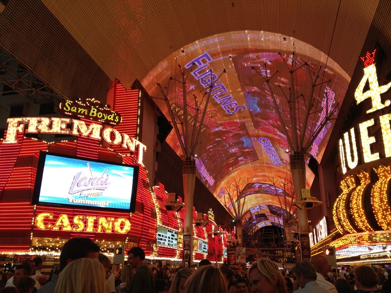 We headed out to the street where there is a music and light show every hour on the electronic canopy that covers Fremont Street. The streets were packed as everyone inside came out to see the show.