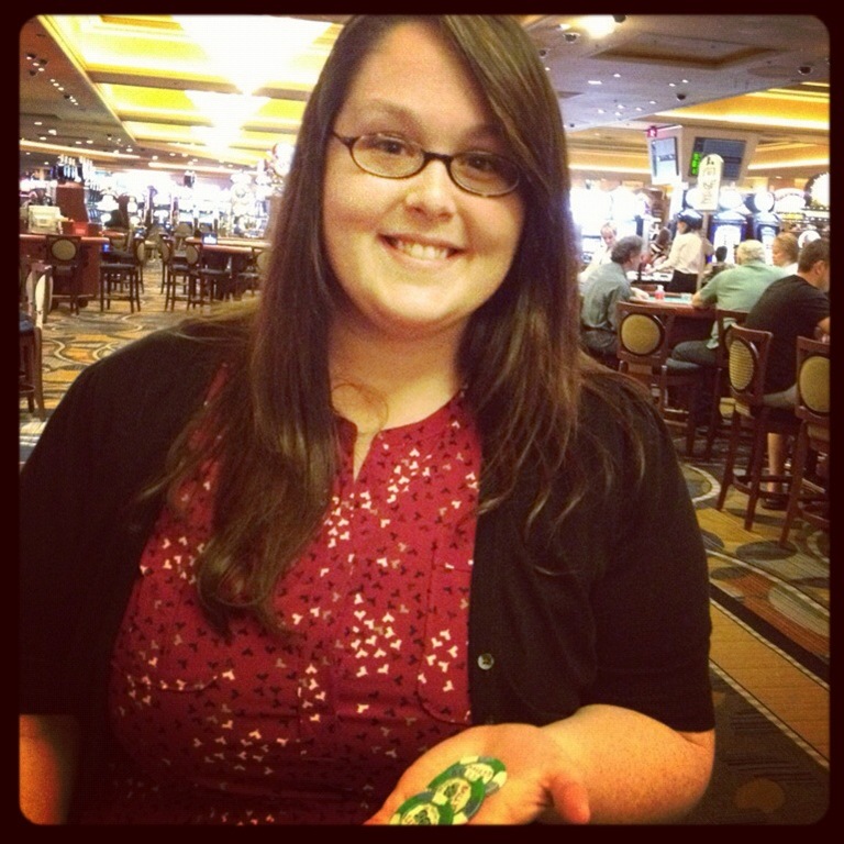 John and I met up after our respective spa trips (the men and women’s spas are separate at Qua). We went to our room and got dressed for dinner. We, yet again, met up with everyone at the black jack tables at Bally’s. We had a few hours to kill so I thought I’d finally play. After three days of watching everyone, I had the game down. John loaned me $20 and I sat down at the table. About 10 hands later I was up to $80 – it was time to quit while I was ahead. How’s that for beginners luck!