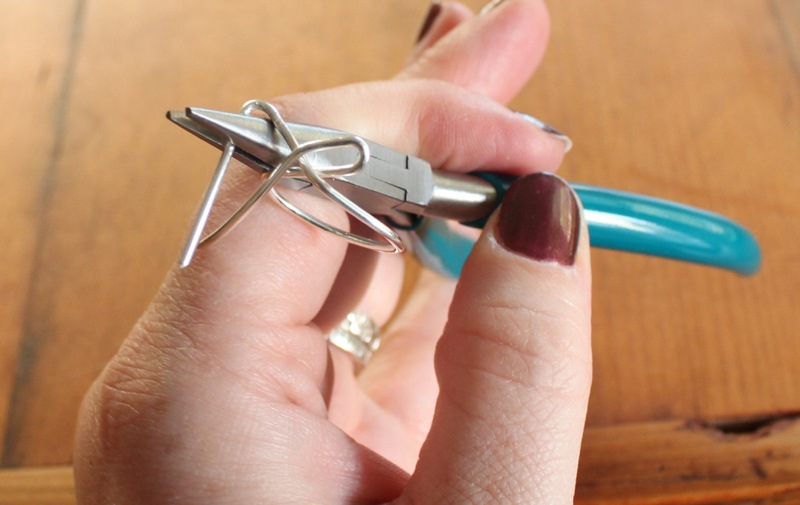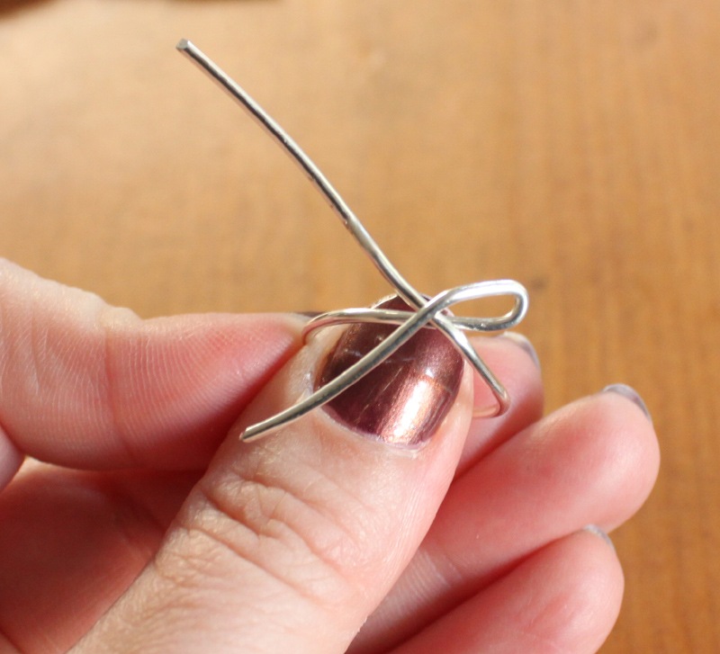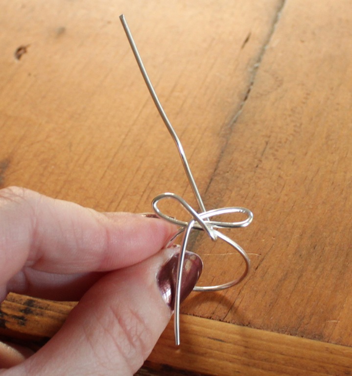 With the needle nose pliers, create two loops that criss-cross to form a bow.