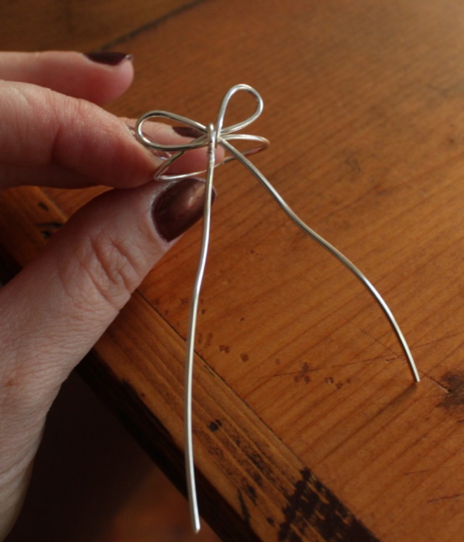 Use the pliers to bend the remaining wire inward. Again, so it doesn’t catch on anything and because I think it creates a little more dimension/movement with the bow.