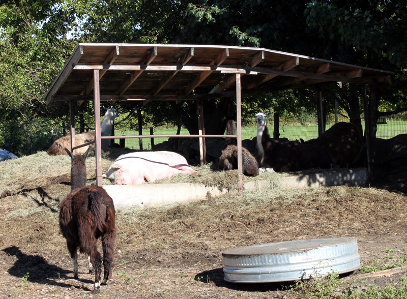 In the backyard the animals can lay out in the sun and snooze. In the middle you can see Jonathan the pig. The backyard is his favorite place to nap. Jonathan was brought to the sanctuary at 4 months old after he was bred by a family to provide entertainment for their children. Apparently they had no use for Jonathan after he was born – it’s such a shame that some humans treat animals like disposable playthings. However, Jonathan now lives a happy life at the sanctuary. I think he may have been the biggest pig I’ve ever seen!