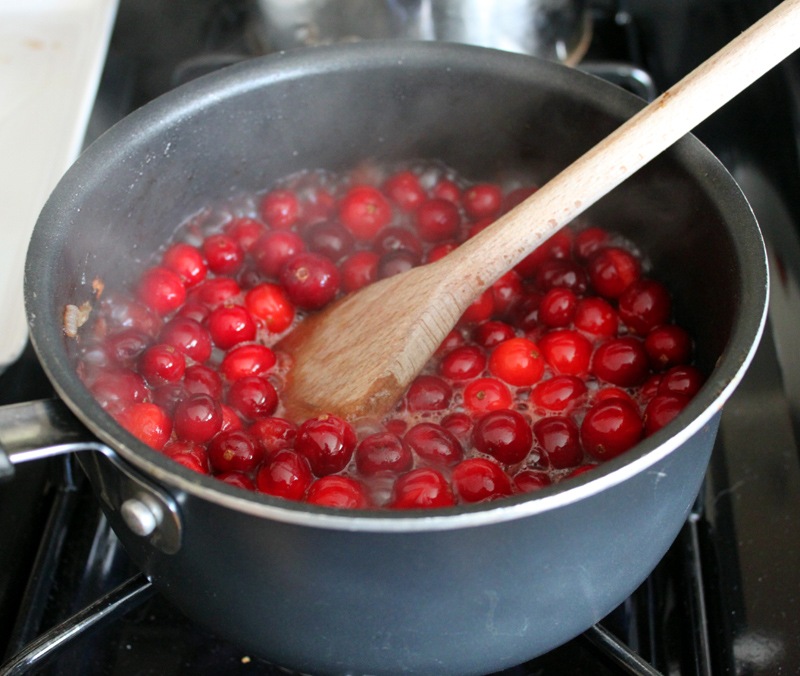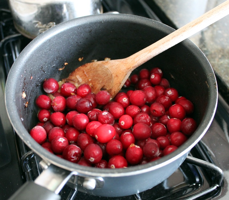 After the cranberries have been cooking for 5-7 minutes, add the ginger and orange.