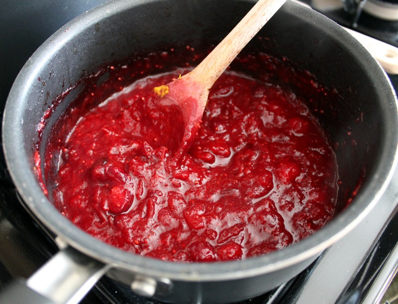 Transfer the finished cranberry sauce to a tupperware container and allow to cool. It will keep in the fridge for up to a week.