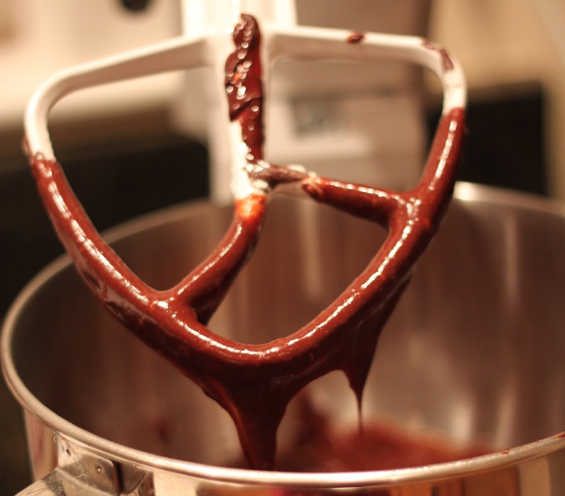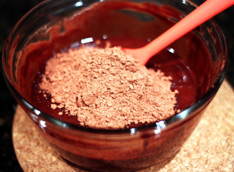 When it is fully melted, remove from the heat and stir in the espresso powder and cocoa powder. Make sure there are no lumps.